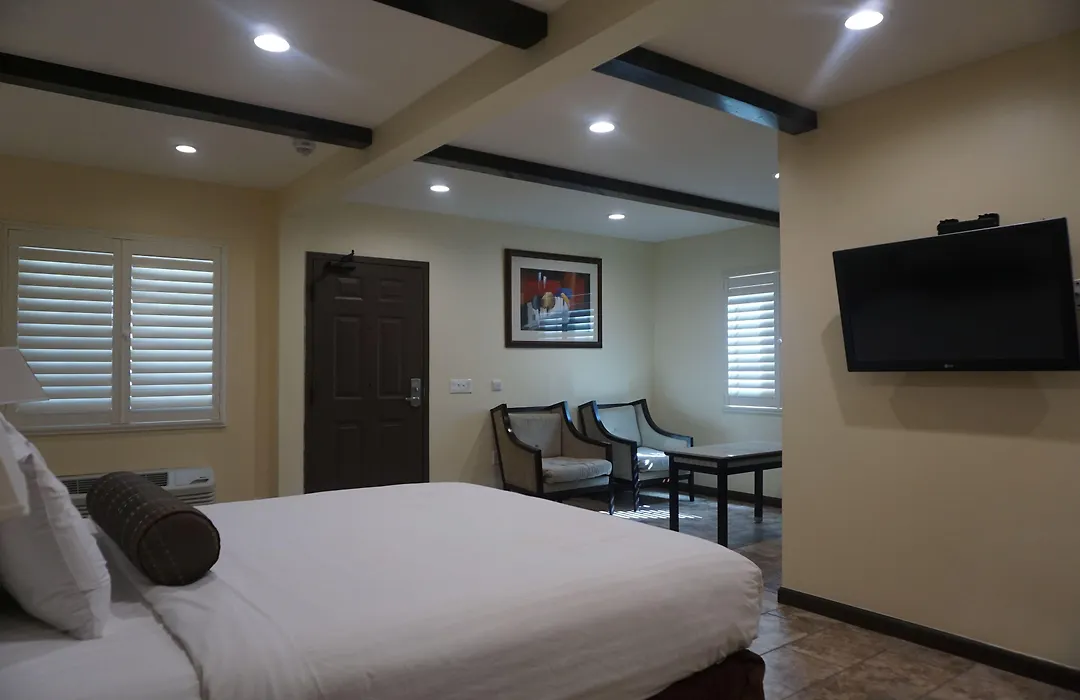 O quarto impecavelmente limpo, razoavelmente grande, a equipe amável, fica na área bonita. Uma boa quantidade de extras: cofre, espaço para armazenamento e máquina de café. Uma localização central, a uma caminhada de MacArthur Park. O check-in fácil foi um bônus.